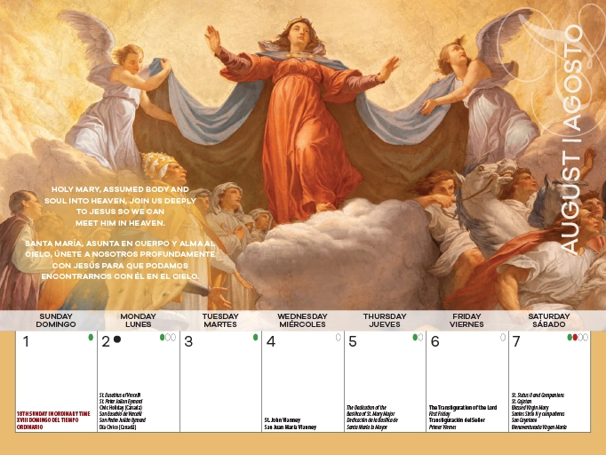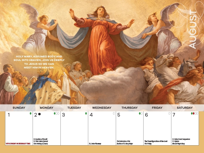 This beautiful and inspiring Catholic calendar will help your parish members pray with and through Mary during the year. With stunning images and striking prayers, each month will unite your members deeply with Mary, leading them to an enriched faith in Jesus and His saving power.